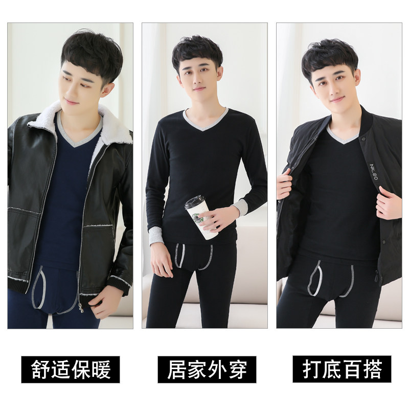 Men's autumn clothes sanitary pants set cotton teen shirt inner pants base winter and autumn clothes tide hot clothes set