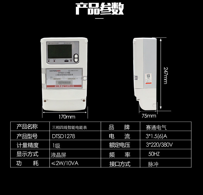 Three-phase four-wire DTSD1278 type 1 5 (6) A mutual inductance type 3 x 220380 V three-phase four-wire DTSD1278 type 1 5 (6) A mutual inductance type 3