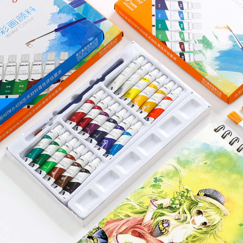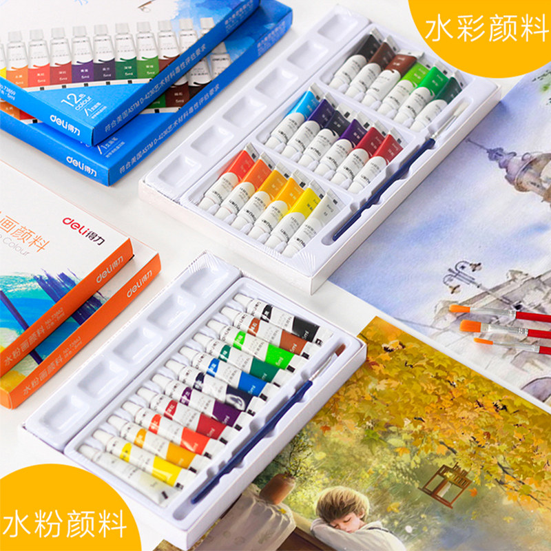 Able Watercolor Water Powder Painting Paint Suit Beginner 24 color 12 color 12 color Elementary students with children non-toxic hand-painted washable kindergarten tone-colored pan paintbrush boxed baby fine art special drawing-Taobao
