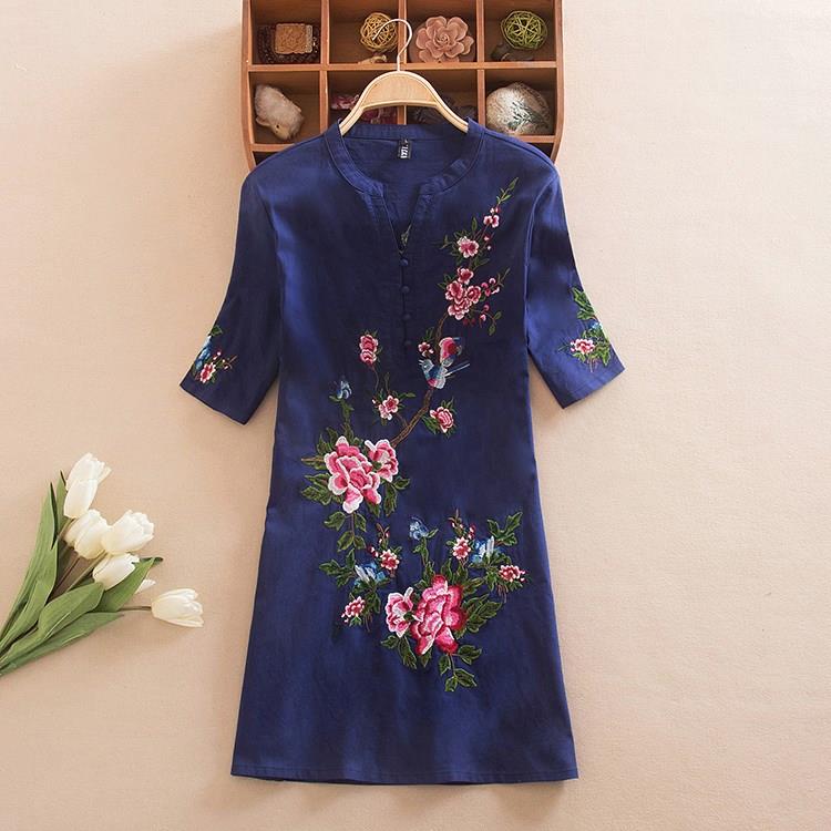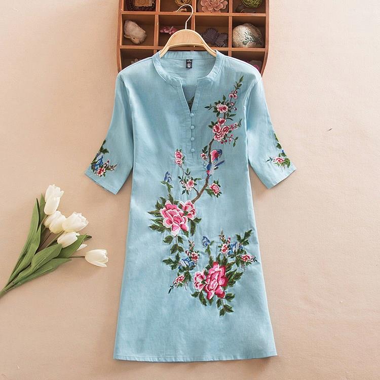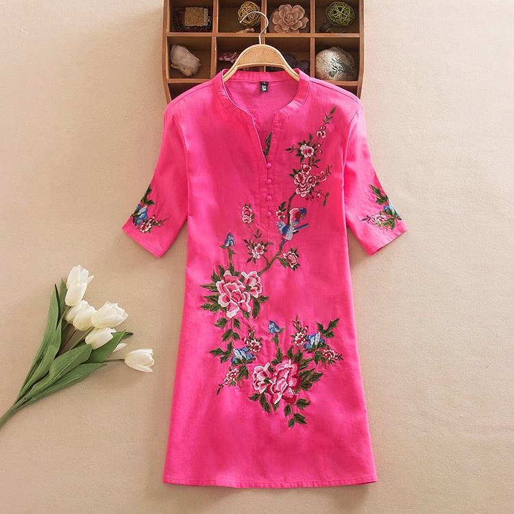 2018 Summer clothes Chinese wind ethnic wind blouses large size cotton linen women's clothing embroidered flowers casual short sleeves in long version shirts