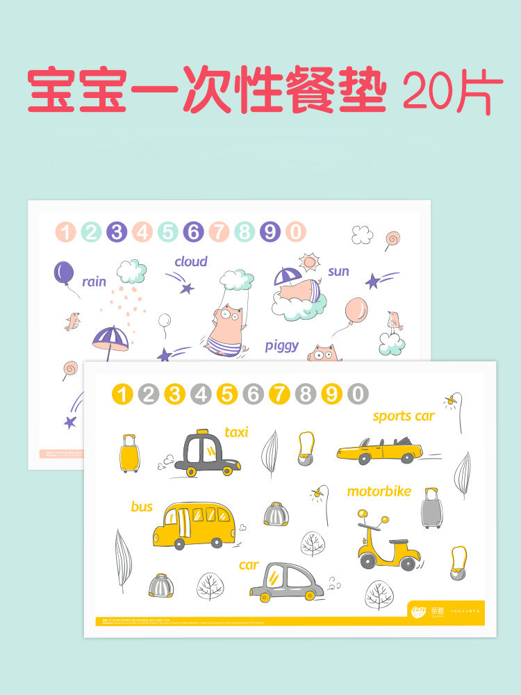 Usiju disposable baby cartoon table mat Children's eating placemat Portable baby sticky placemat paper