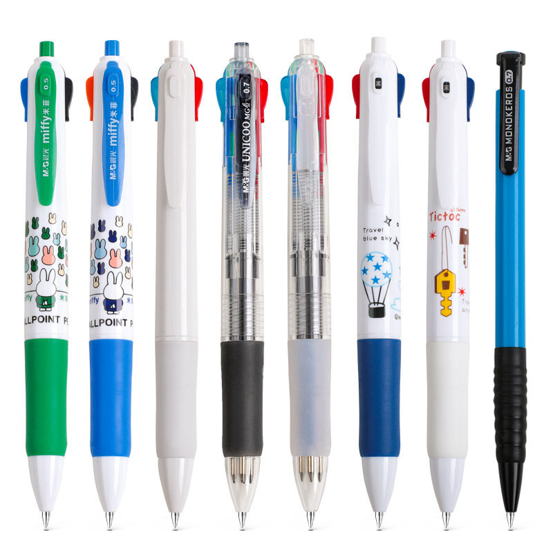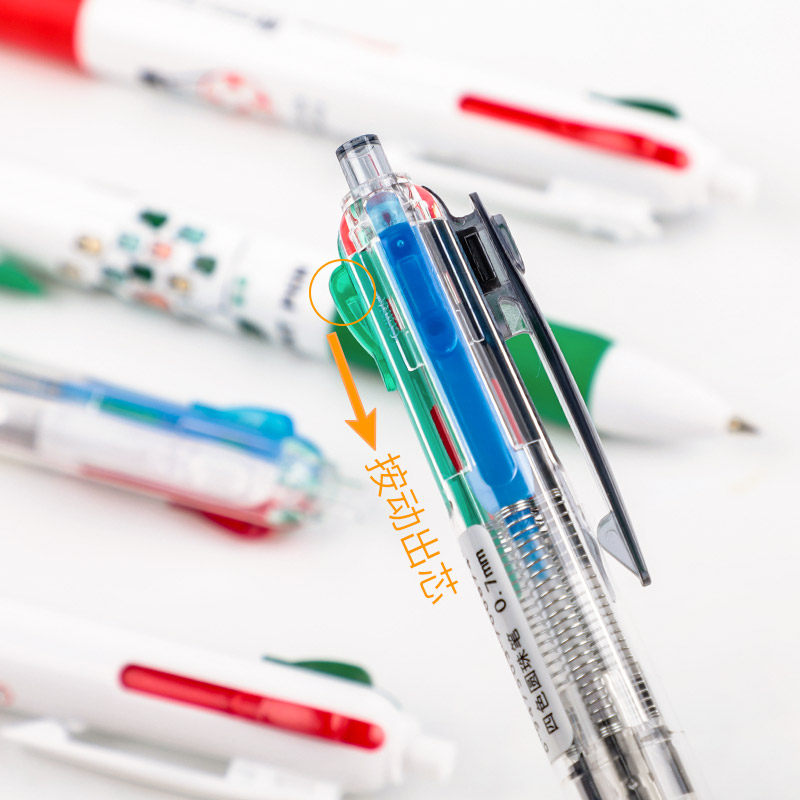 Morning light stationery multicolor ball pen refill 4-color medium oil pen student with 4 color atomic pen Learn to make notes by action pen 0 0 5 mm 7mm black red blue green colorful pen 12 wholesome