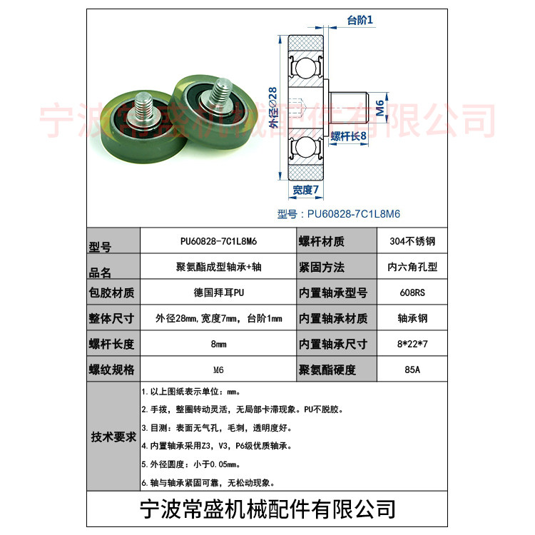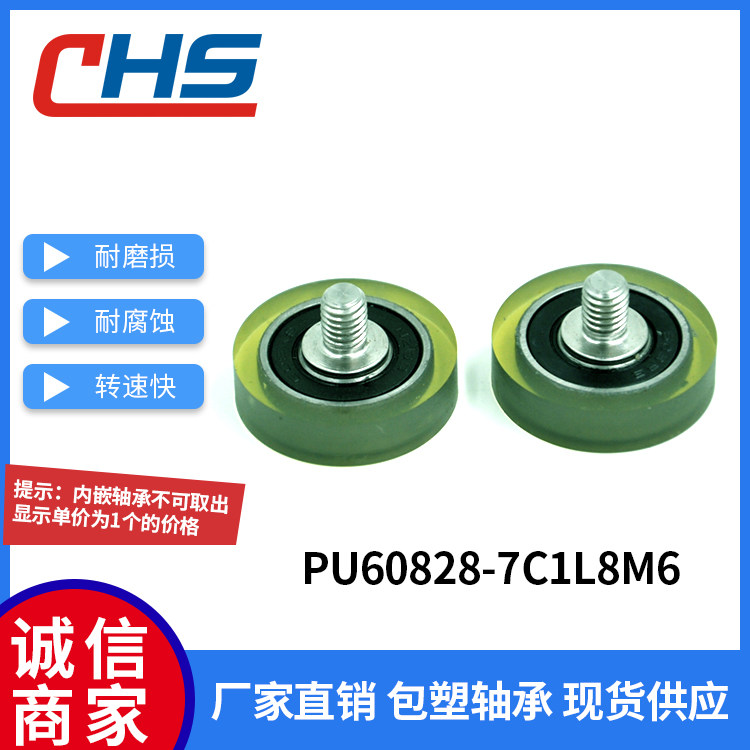 Supply polyurethane plastic-coated plastic-coated bearing PU60828-7C1L8M6 roller rubber bearing wheel mute wear-resistant