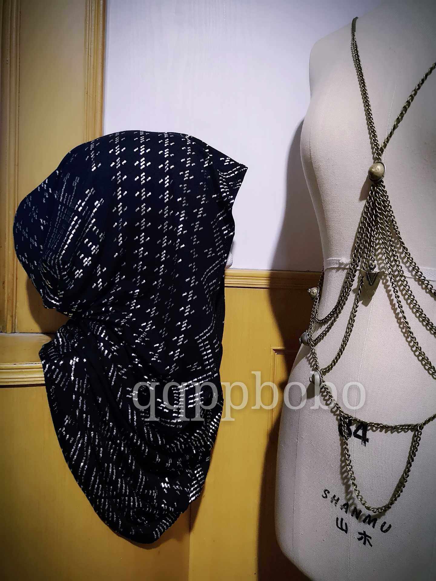 Dark Black Wind tribe Fusion of belly dance Masuit with neck hat oversize headsets male and female