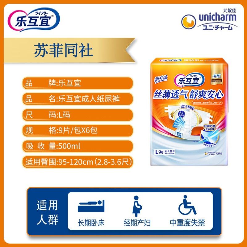 Yuni Jiole Interlivable waist sticker type adult paper diaper large number of urine pants male and female adhesive elderly urine does not wet 9 pieces