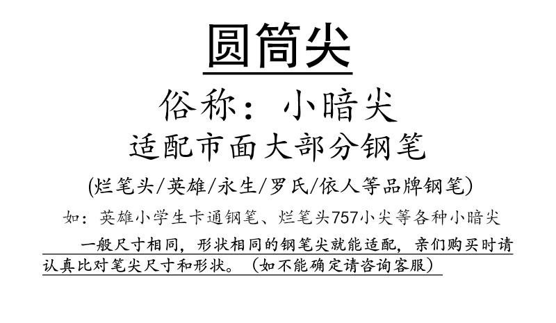 Silver Fir son pen tip Cylinder nib art curved tip extra fine medium small tip Dark tip Package tip 10 universal 0 5mm Student small tip pen 0 38mm
