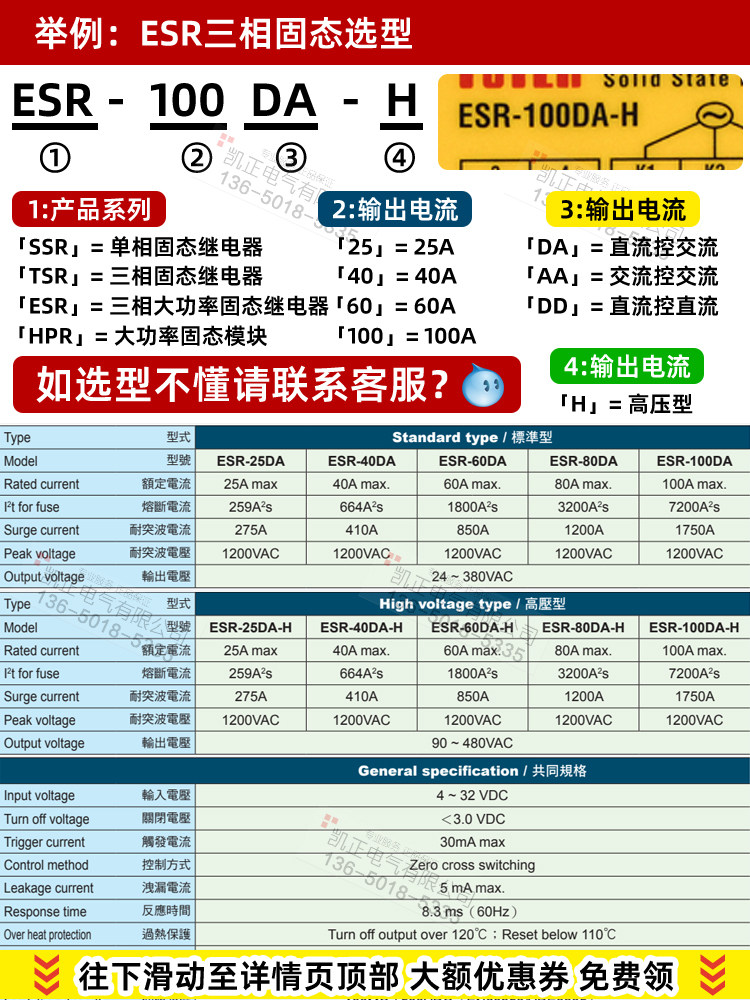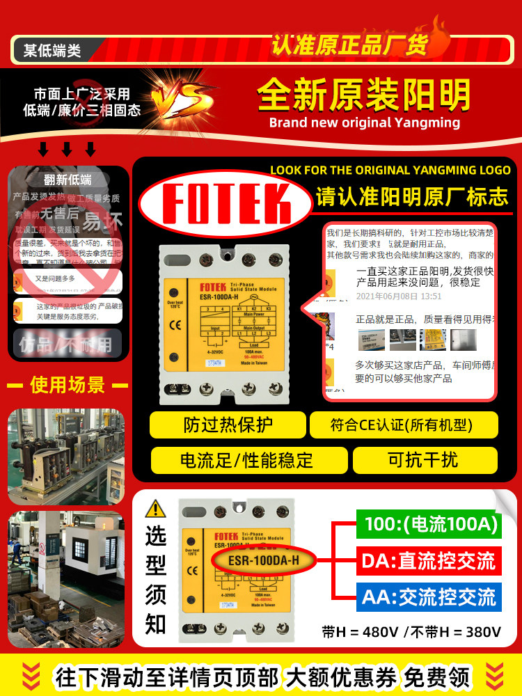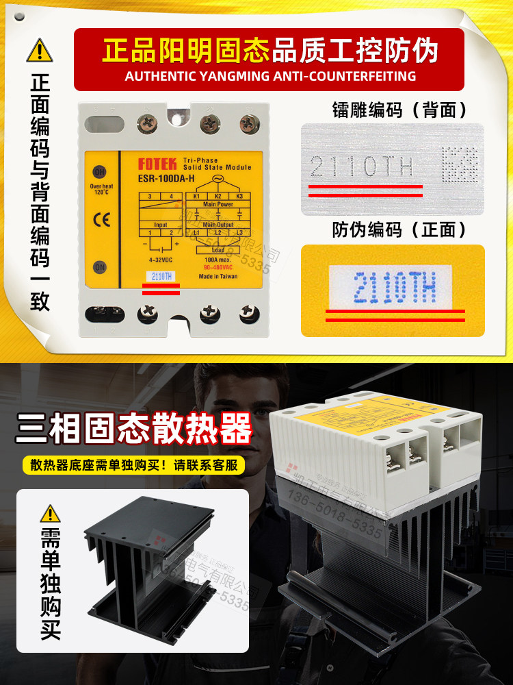 Taiwan FOTEK Yangming ESR-100DA-H 25 60 75 80 40-H three-phase solid state relay module