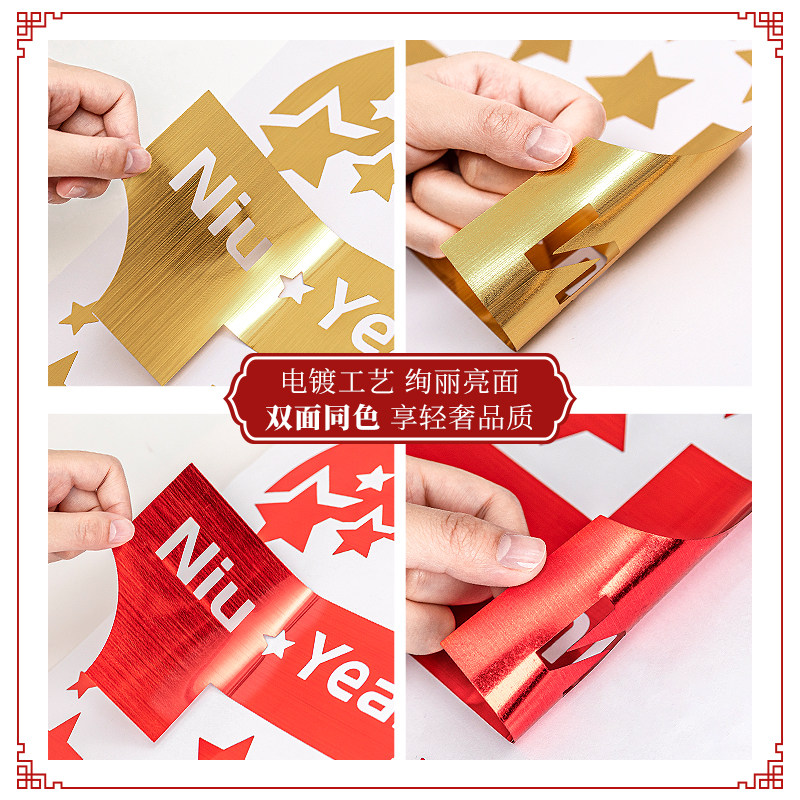 A- Classical diagonal window stickers (gold) B- classical diagonal window stickers (red) C Lehu New Year (gold) D Le Hu New Year (red) E-Hua Chaoyue