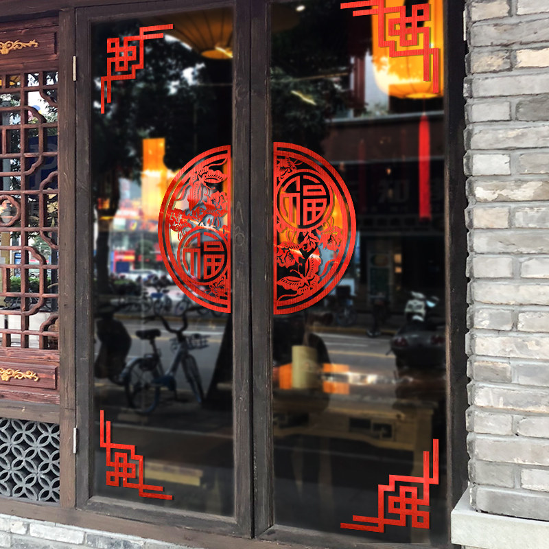 2022 Spring Festival New Year New Year glass door stickers self-adhesive shop window stickers living room scene layout door stickers home