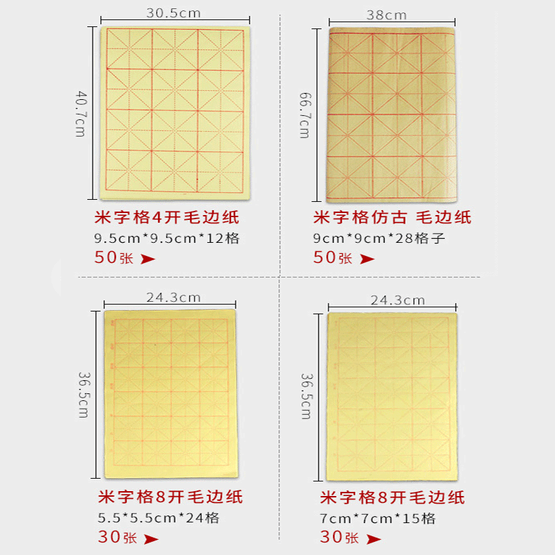 Liupintang raw edge paper rice character grid wholesale yuan book paper handmade rice paper brush calligraphy practice paper rice grid paper calligraphy paper