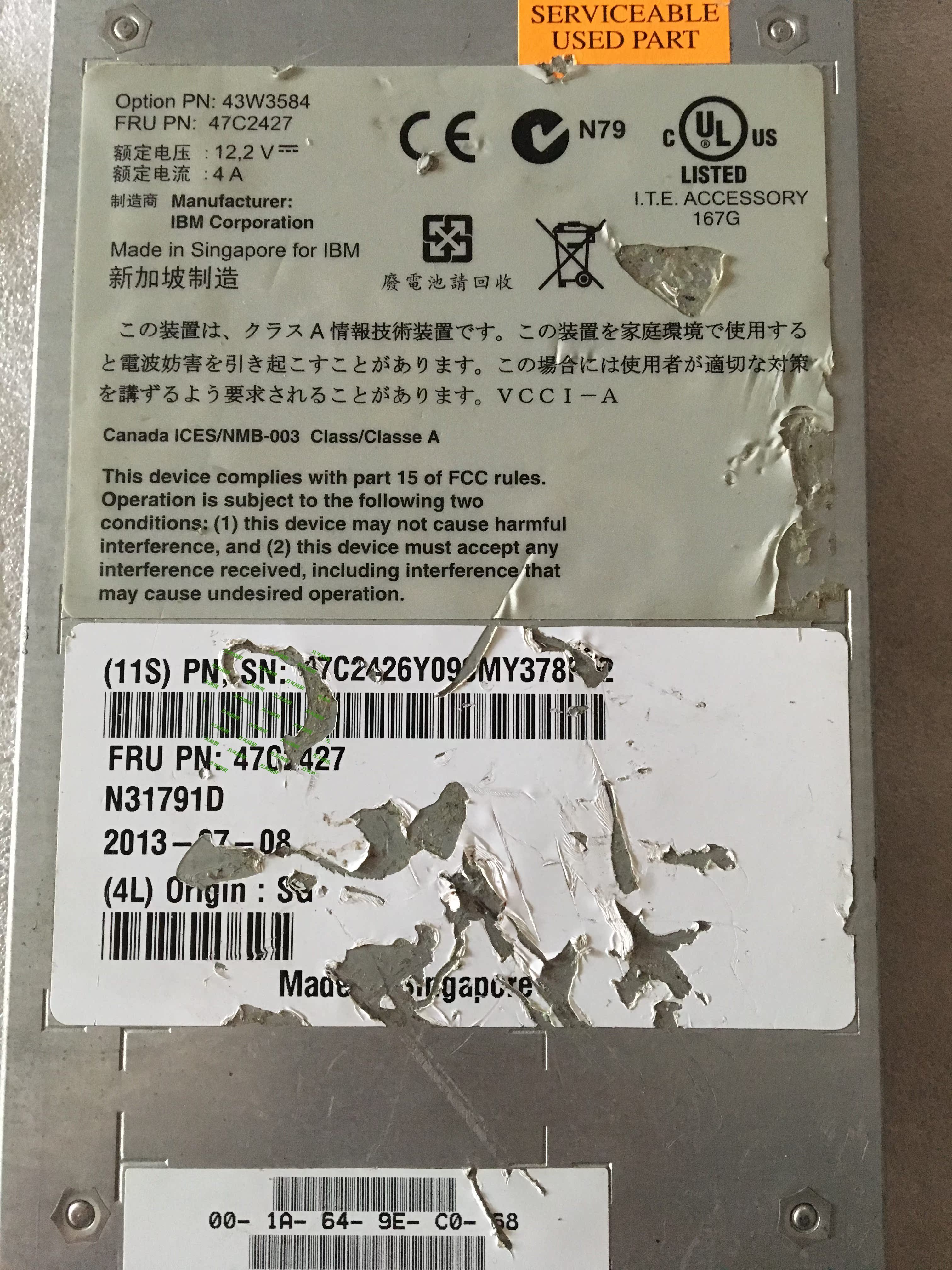43W3584 47C2427 SAS RAID Control Module Toolbox Module