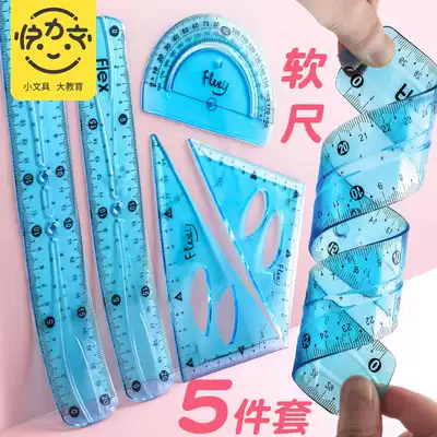 Fast force text soft ruler four-piece set soft ruler 20cm flexible plastic ruler transparent sleeve ruler triangle scale primary school student triangle board a set of 30cm beating multi-function stationery first grade