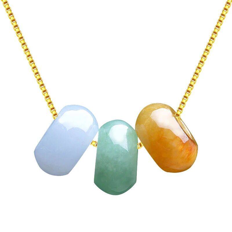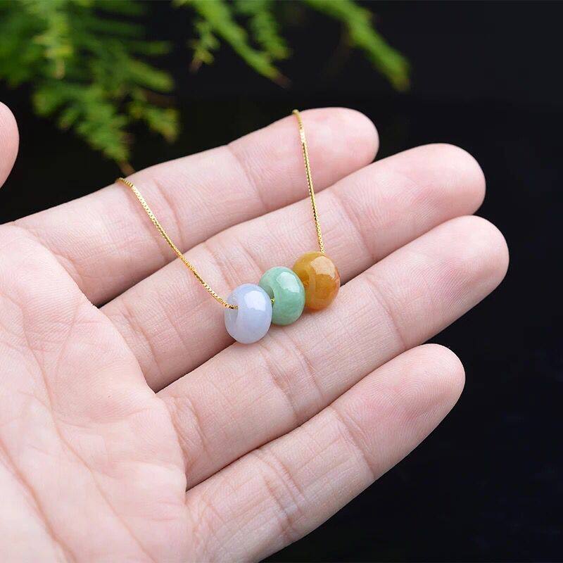 Heilongxuan Natural A - colored disk beads emerald pendant jade roadway necklace gift