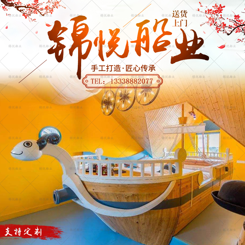 Custom Solid Wood Creative Sea Thief King Children's Bed Meri Ship Type Bed Caribbean Middle Sea Pirate Ship Imitation Ancient Warfare Ship