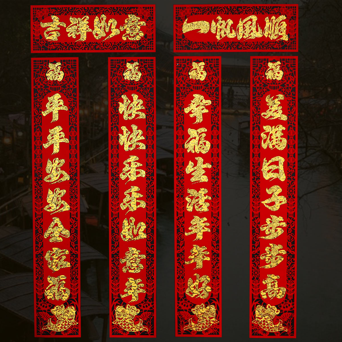 2021 Year of the Ox Spring Festival High-grade New Year couplets New Year decoration couplets gift package Flocking cloth with glue door sticker customization