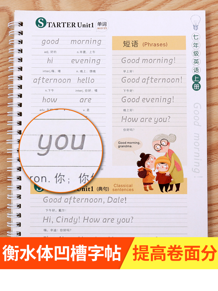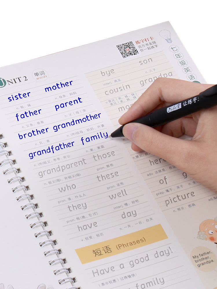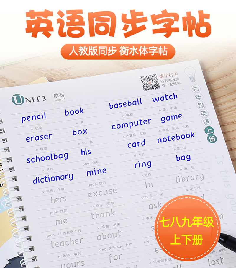 Junior high school 8th grade up and down register English words and balance body of water Primary 1 23 textbooks Synchrotron groove Practicing Calligraphy Post for Teaching Edition English Practicing Calligraphy Post 7-8-9 Years High School Students