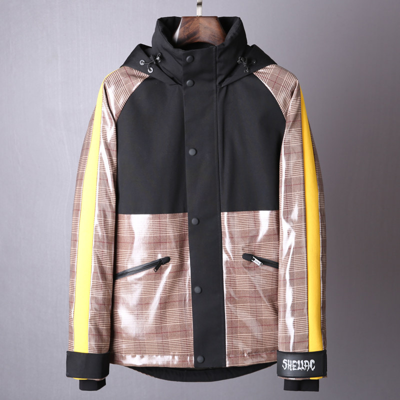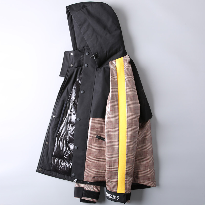 Heavy Industry Cattle Goods Interpretation High-end Patent Leather Coated Houndstooth Check Men's Short Hooded Tide Brand Down Jacket