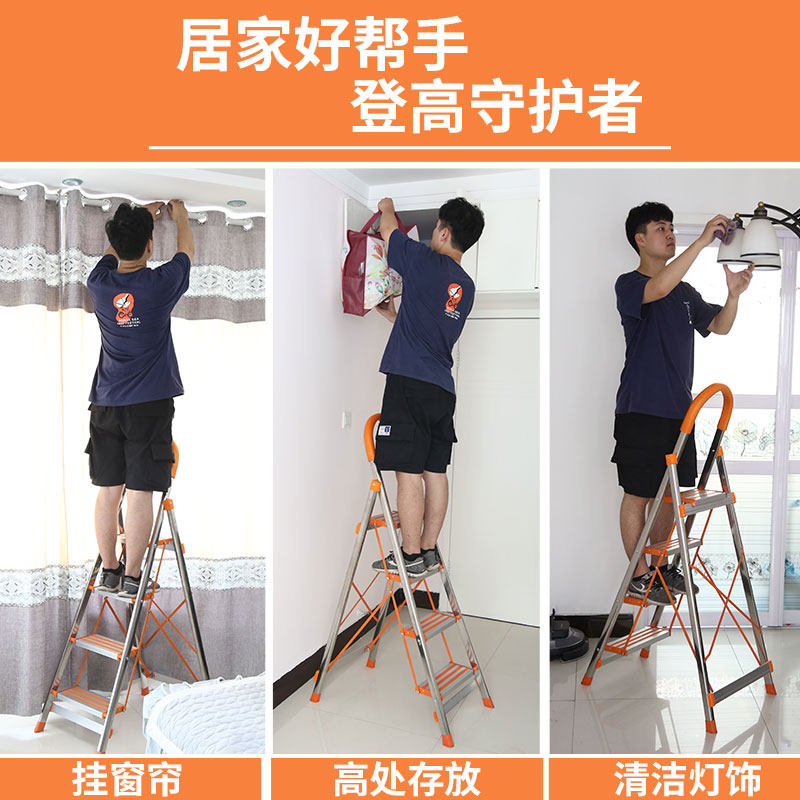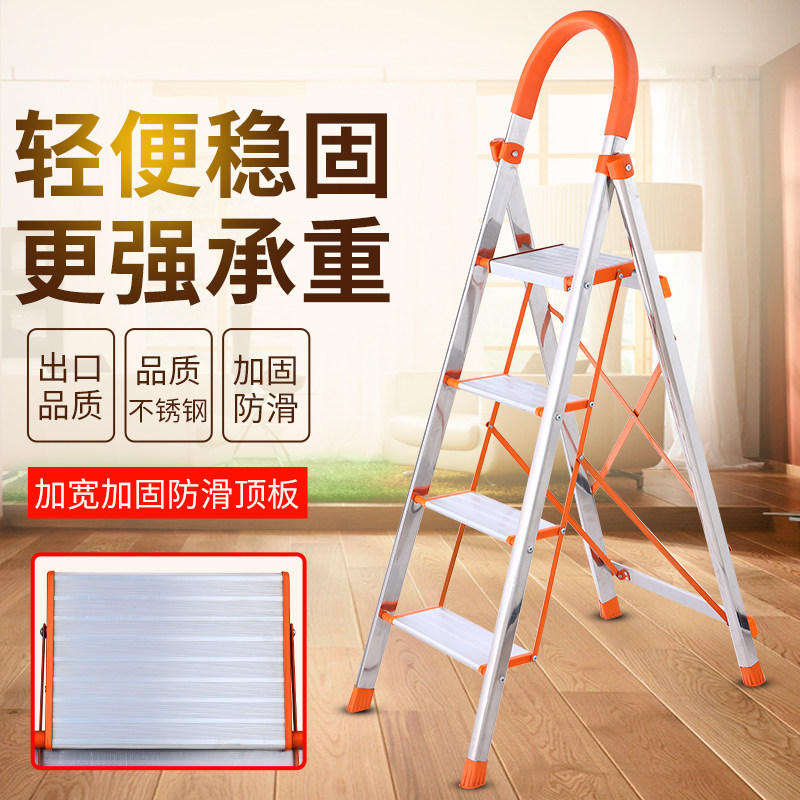 Stainless steel home folding ladder aluminium alloy thickened five-six character ladder Indoor portable multifunctional engineering stairs