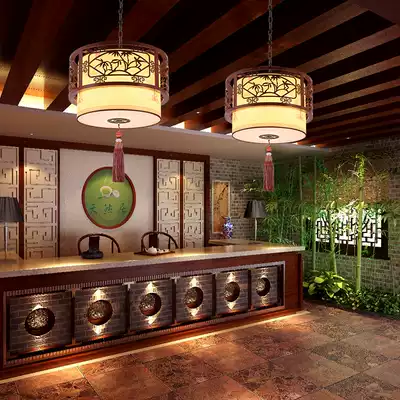Modern Chinese chandelier retro Chinese style dining room chandelier living room lamp Teahouse restaurant Box Creative sheepskin lamps