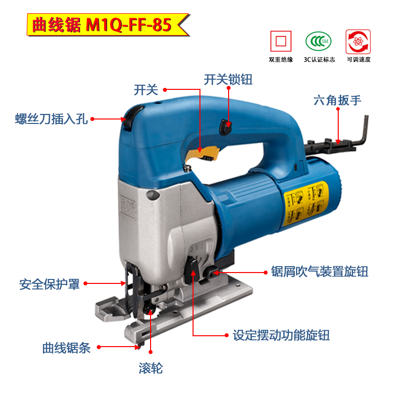 600 watts FF-65 original standard 580 watts FF-85 original standard 5 pieces Dongcheng saw blade T111C5 only Dongcheng saw blade T118A5 only Dongcheng saw blade T14