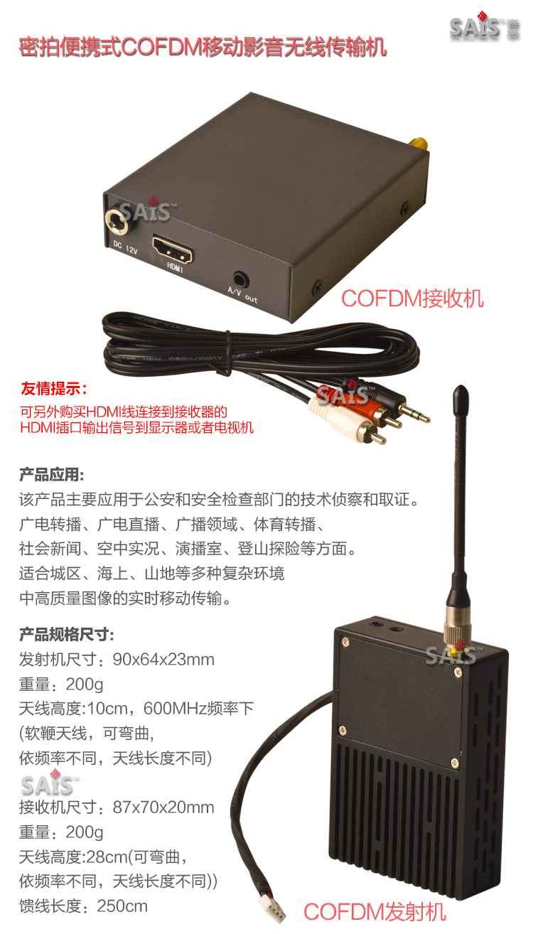 COFDM wireless image transmission digital transmitter and receiver UAV FPV aerial photography audio and video high-definition video transmission