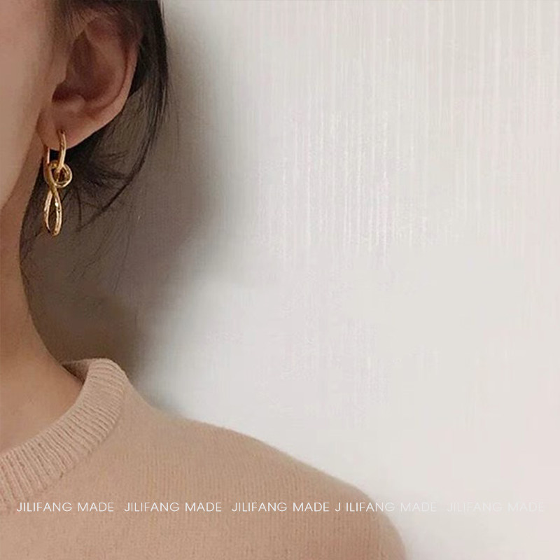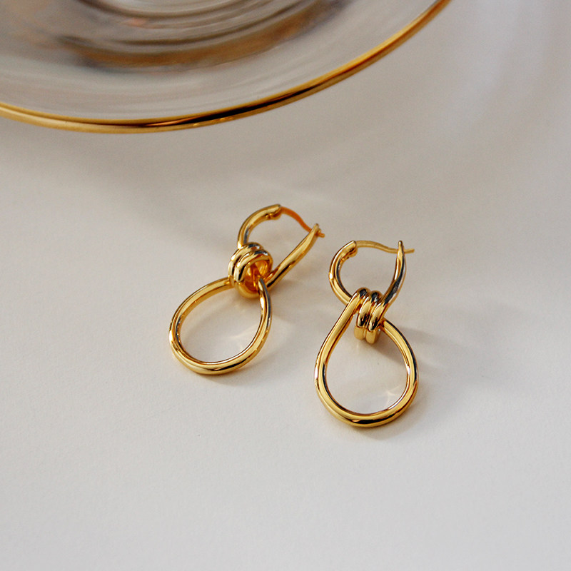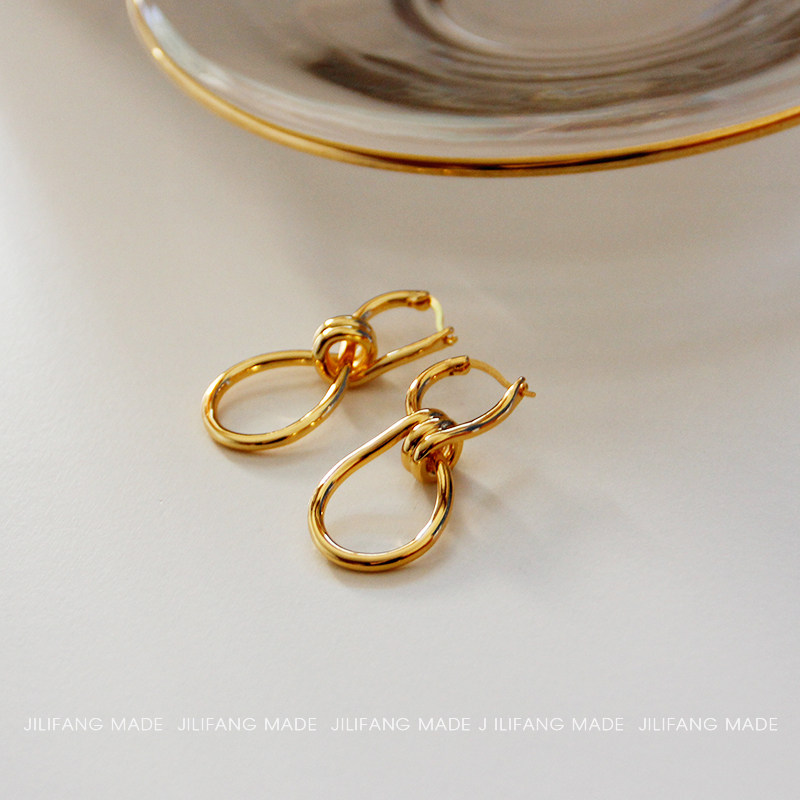 Europe and the United States 18K gold package Celi French style designer 8-character winding rope knot ear pin knotted earrings hypoallergenic