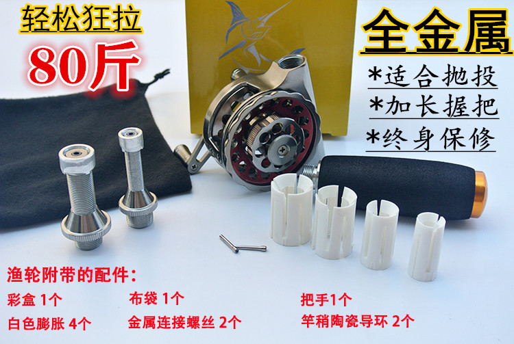 Full metal speed ratio via wheel Eight word slot with self unloading power fishing wheel inner routing through rod front beating wheel fish wire wheel