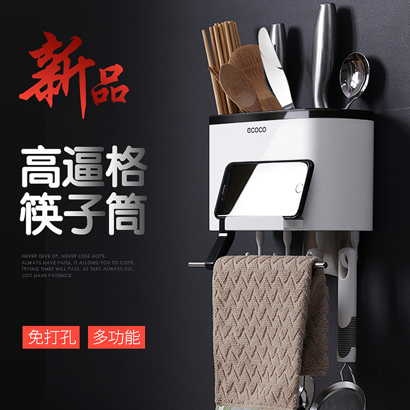Home Multi-function Perforated Wall-mounted Kitchen God Instrumental Knife Shelve Chopsticks Cage Cutlery Barrel Containing box