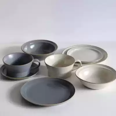 Beige small plate 16cm Beige medium plate 20cm Beige large plate 23cm Beige breakfast cup Beige small bowl Beige soup plate 21cm Gray small plate 16cm gray medium plate 20cm gray large