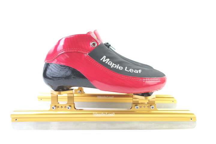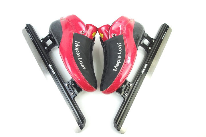 Speed skating with ice-knife shoes in the water