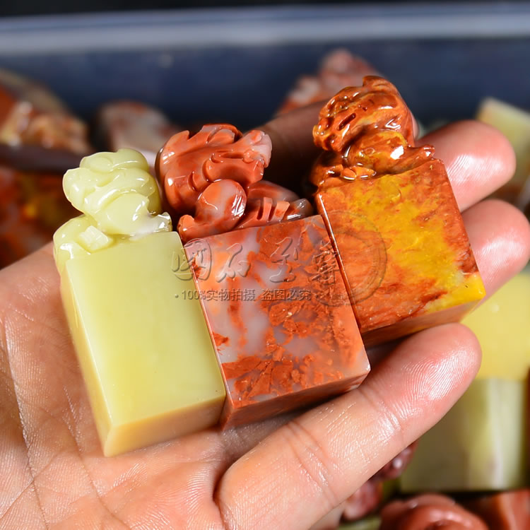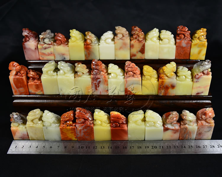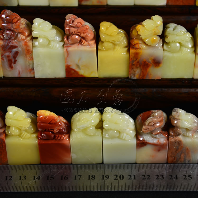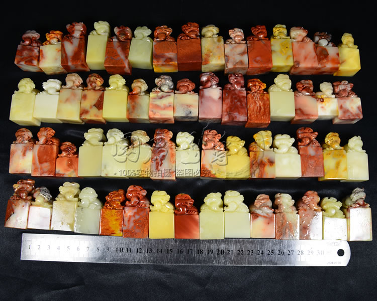 Fujian Guoshi Shou Mountain hibiscus Hibiscus Stone Button Head Square Chapter Batch Zhang Hand Fine Carving Seal Print Button 15 Fang set of special price