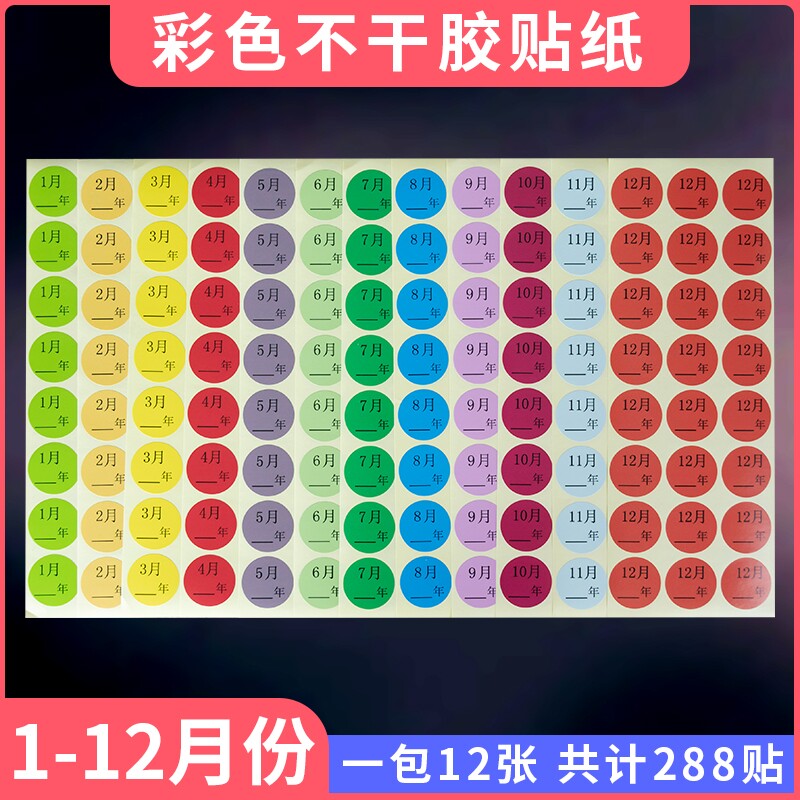 Color Month Digital Sticker 1 - December Digital Classification Tag Gu 25mm Circular Month Label Label