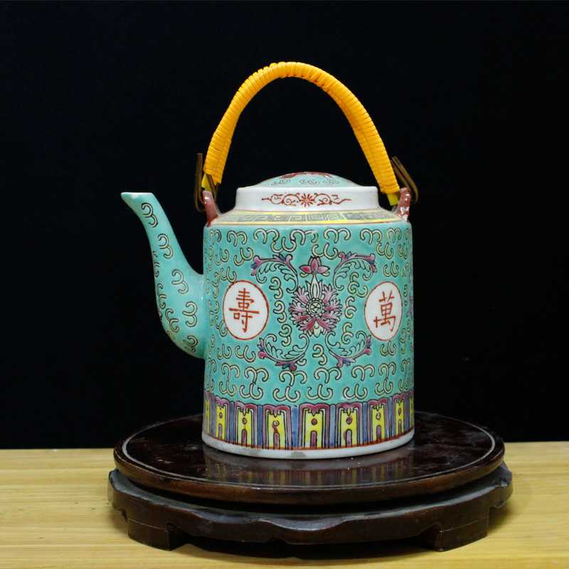Jingdezhen factory goods Cultural Revolution porcelain Ti-liang pot teapot kettle Wanshou no territory Collection bag old bag real old stock