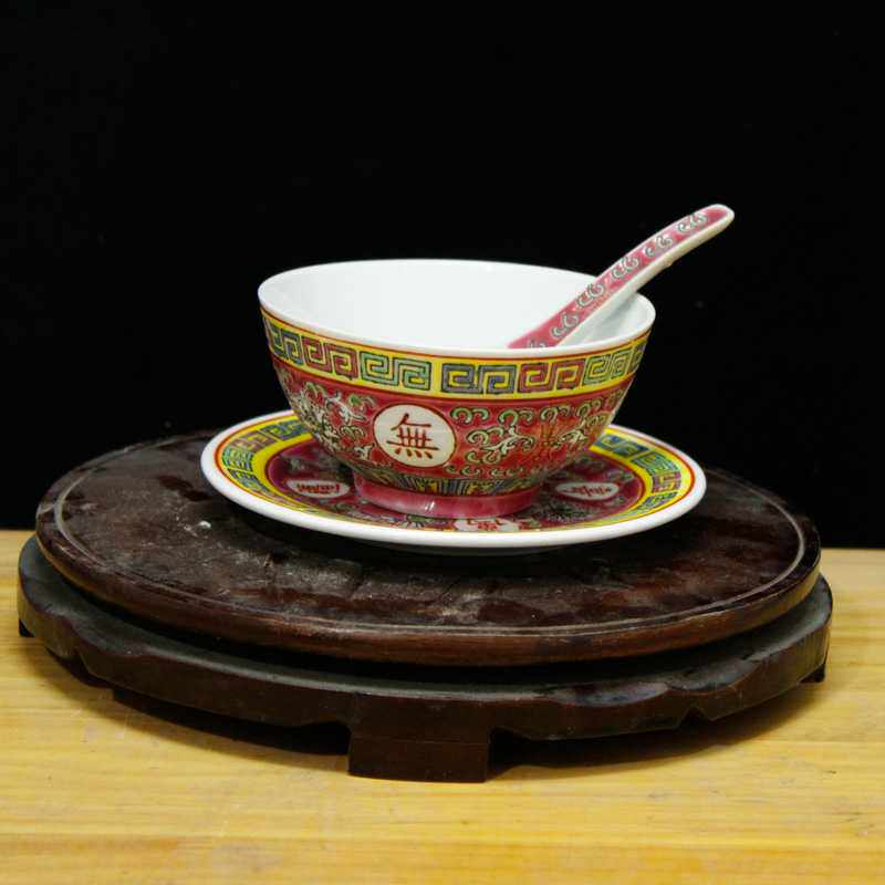 Jingdezhen factory goods Cultural Revolution Porcelain Rice Bowls rice bowls Wanshou no Xinjiang Six inch flat pan rice spoon spoon spoon
