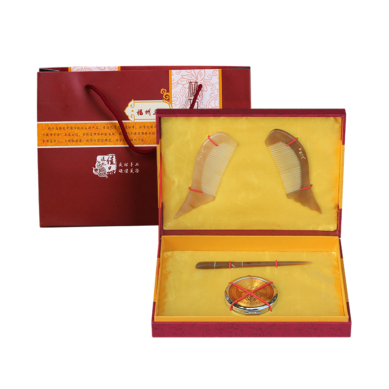 Lin Qiaosmith natural horn comb makeup mirror hairpin four-piece set gift box set engraved love gift wedding gift