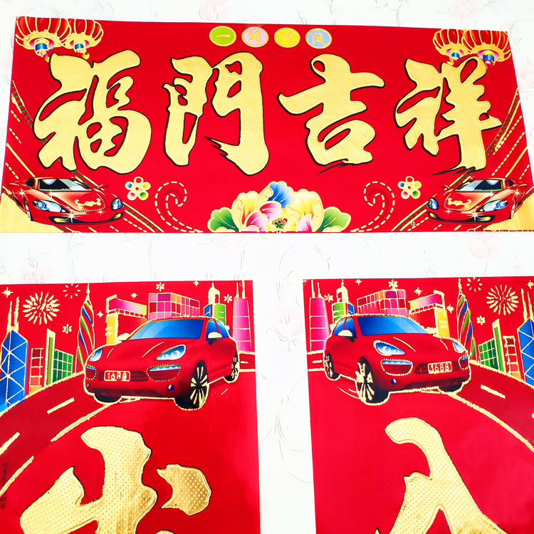 Full gold garage couplet car car 2023 Year of the Rabbit New Year Spring Festival Chinese New Year Fu word door stickers factory direct sales