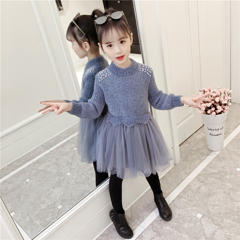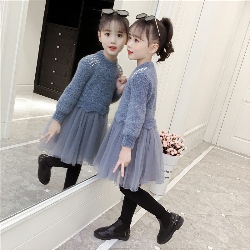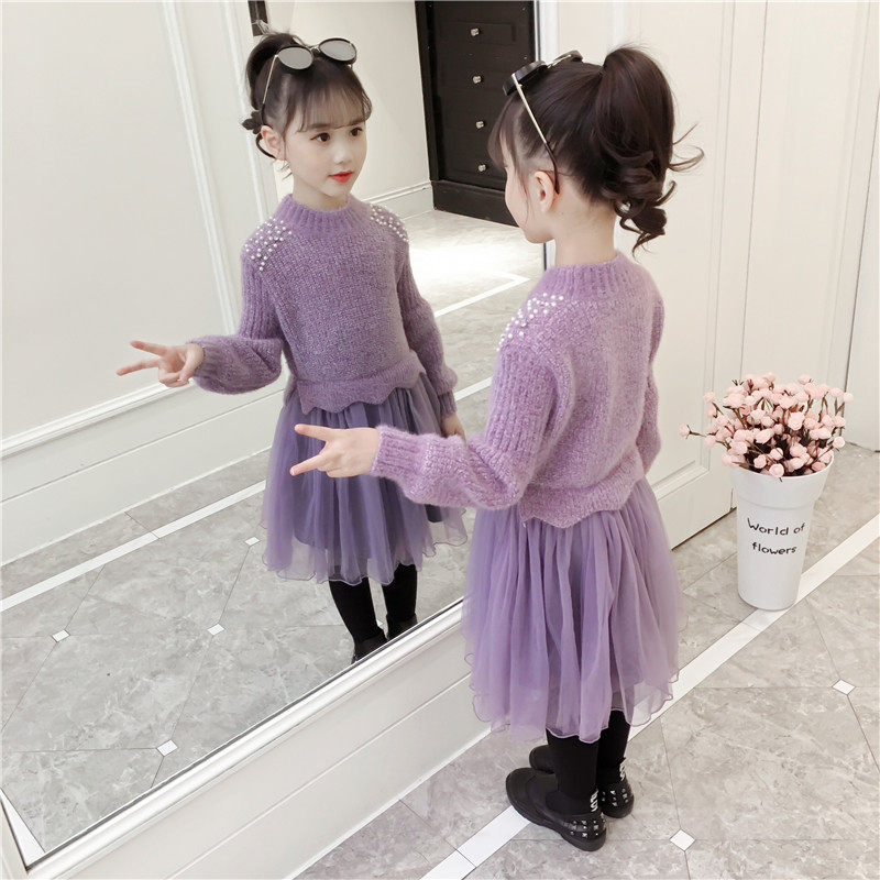 Girl Ocean Dress 2022 Autumn Winter New Sweater Dress Foreign Princess Dress Little Girl Plus Suede Children Dresses New Year