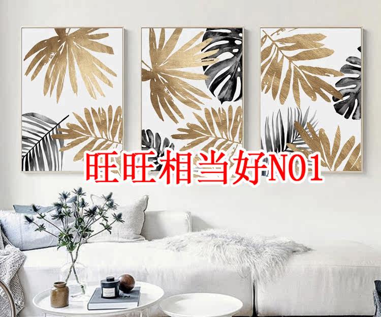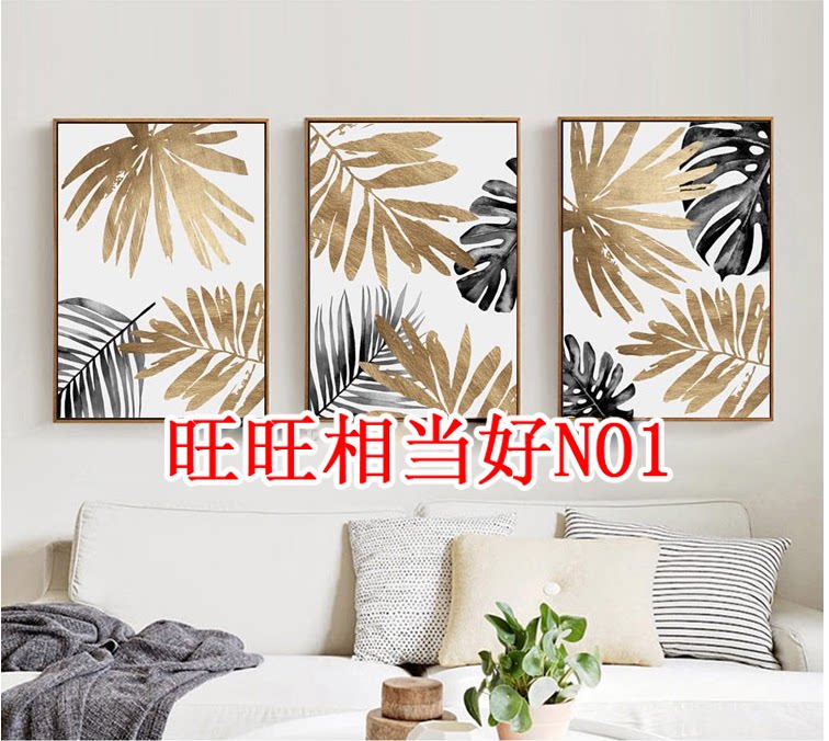 Modern Nordic decoration painting minimalist golden leaf Living room Triple decoration painting Living room HD Photo material p