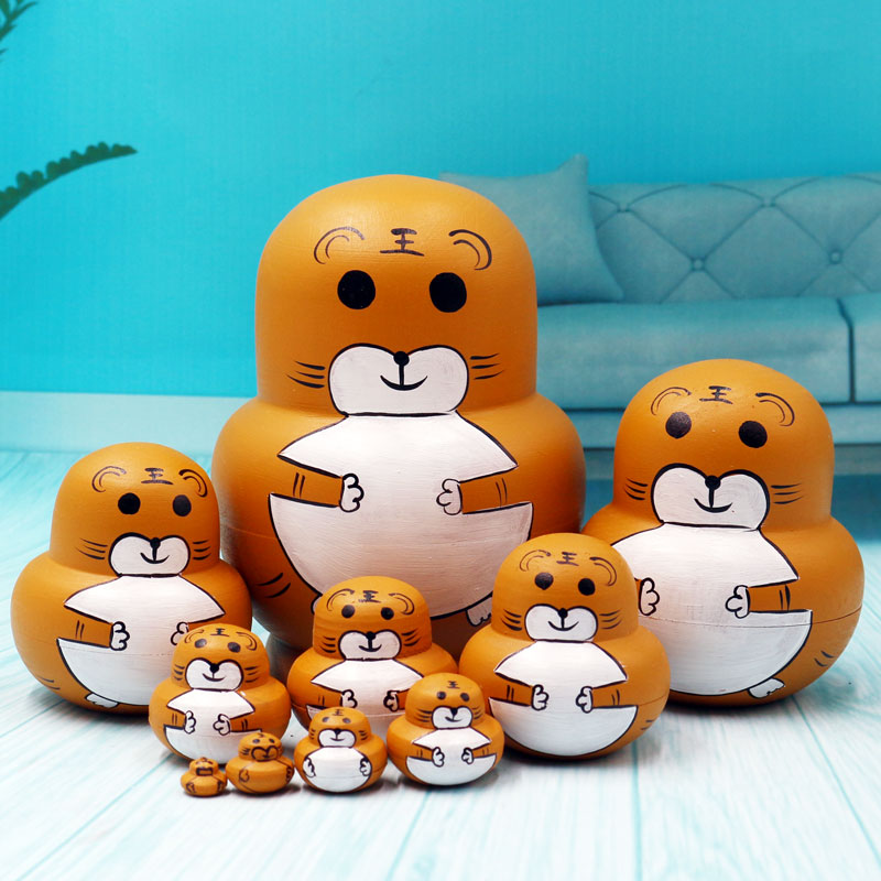 Russian Jacket 10 Floors Handmade Clear Cabin Children Puzzle Toys Cute Cartoon Wooden Dolls China Wind