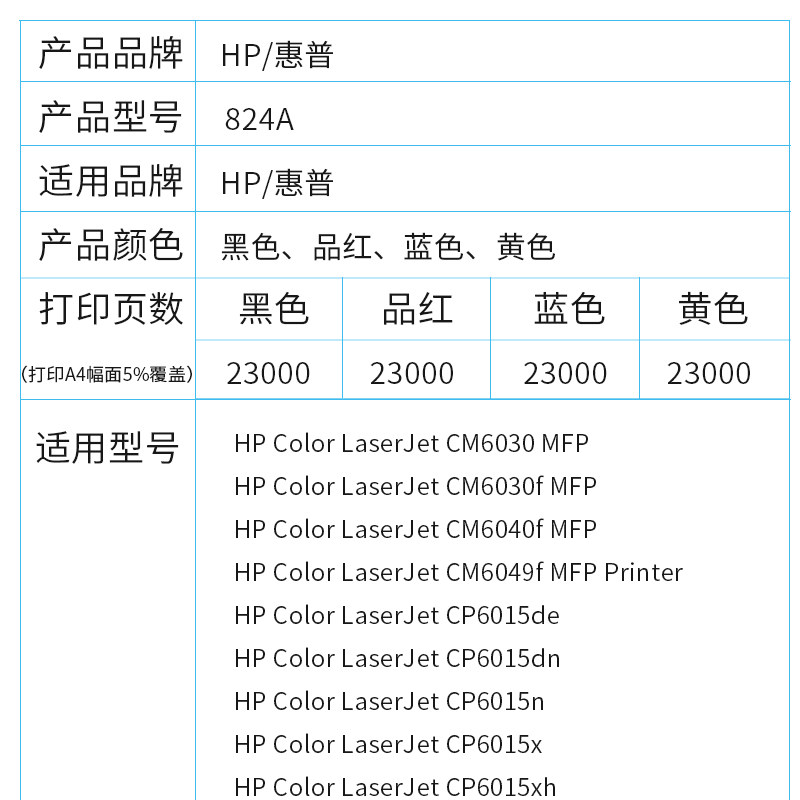 HP 824A black laser imaging drum (CB384A) 23000 pages A4 paper 5% covering HP 824A cyan laser imaging drum (CB385A)