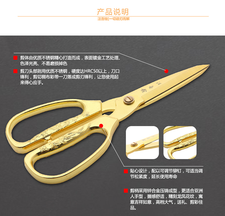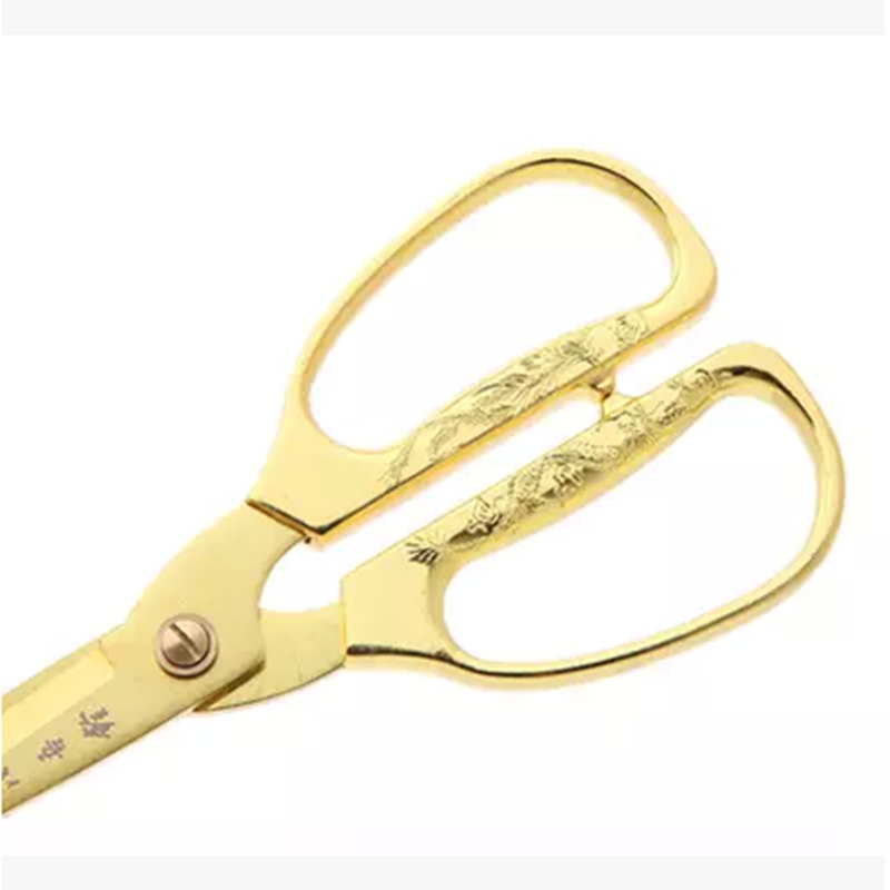Wang Wu Quan Full Golden Scissors Superior Alloy Dragon Pinewood Cut Opening Cut of Wedding Clippings Scissors Home Scissors