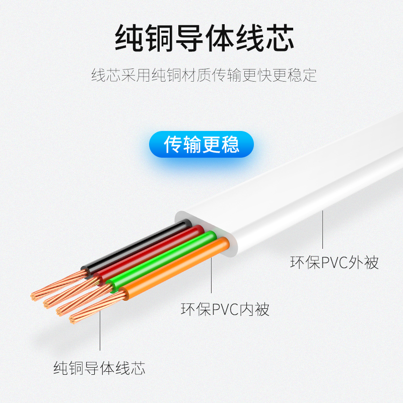 Landline 4 Core Phone Line 2 Core Extension Line Finished Phone Jumper Outdoor Pure Copper-solid Phone Wire Phone Wire instrumental-Taobao
