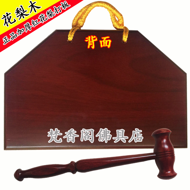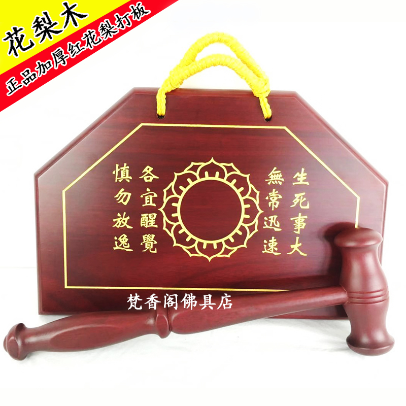 Buddhist Supplies Red Flowers Pear Wood Solid Wood Beating Plate with Words Board Instruments Cloud Plate Thickened Lotus Engraving Monastery Swing Piece