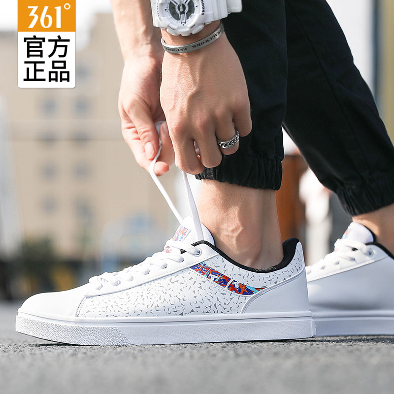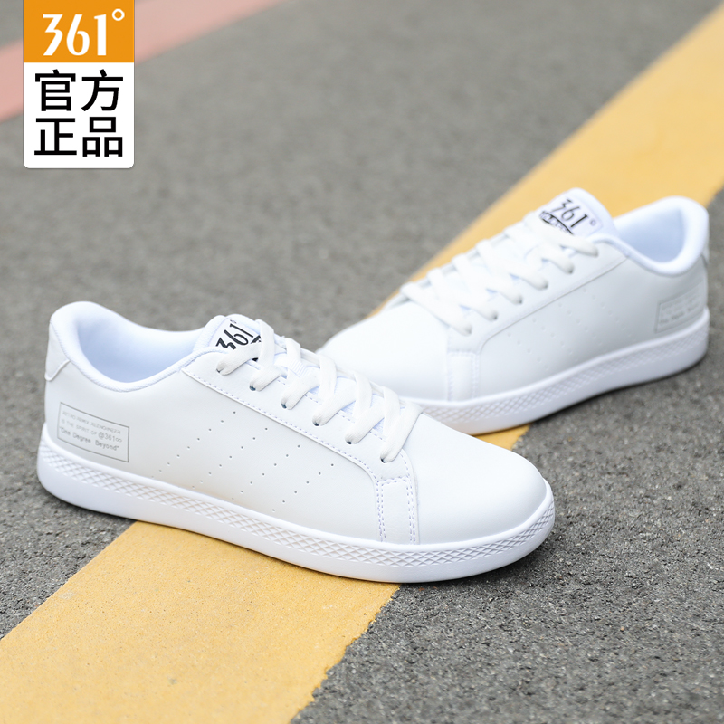 361 sports shoes men's spring and autumn leather small white shoes white shoes men's casual shoes white 361 degree men's shoes board shoes