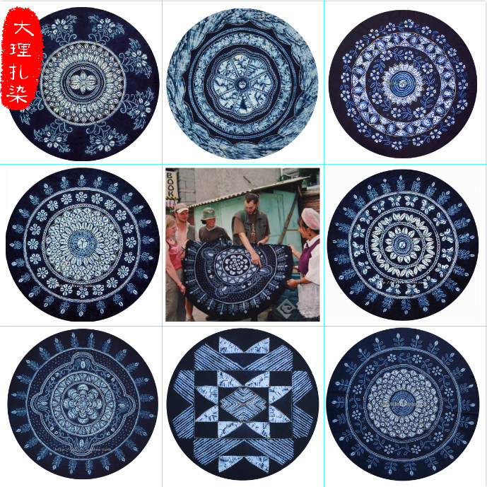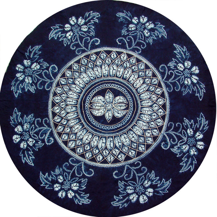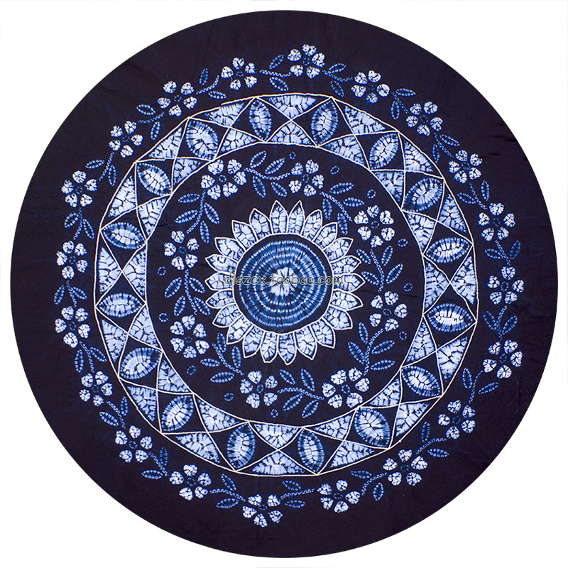 Yunnan non-heritage Dali Bai handmade tie-dyed round pure cotton blue dyed ethnic dark blue dining restaurant round table cloth