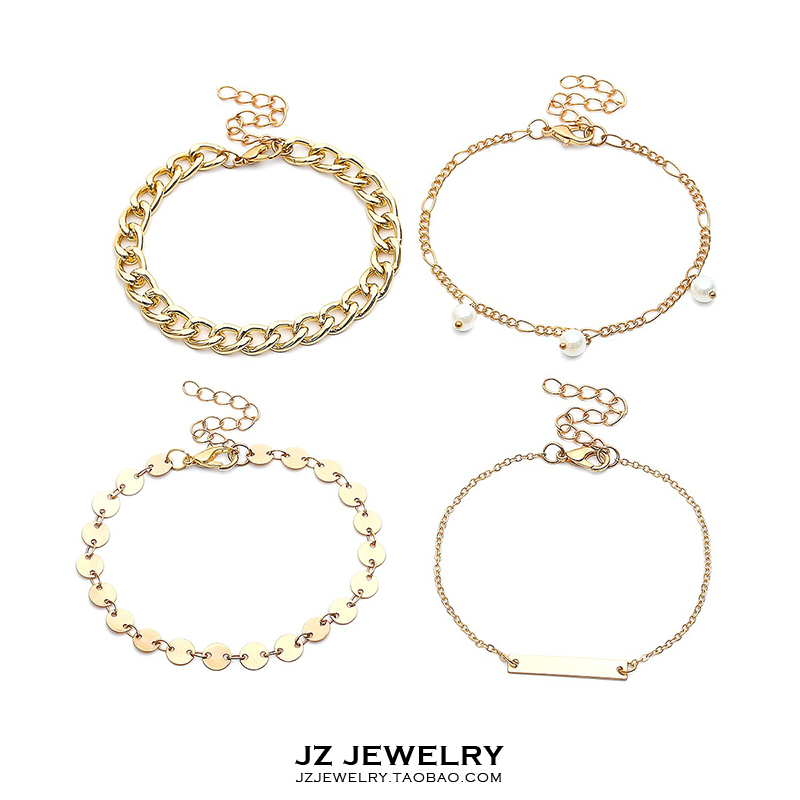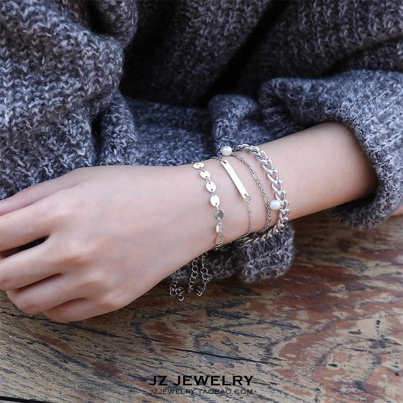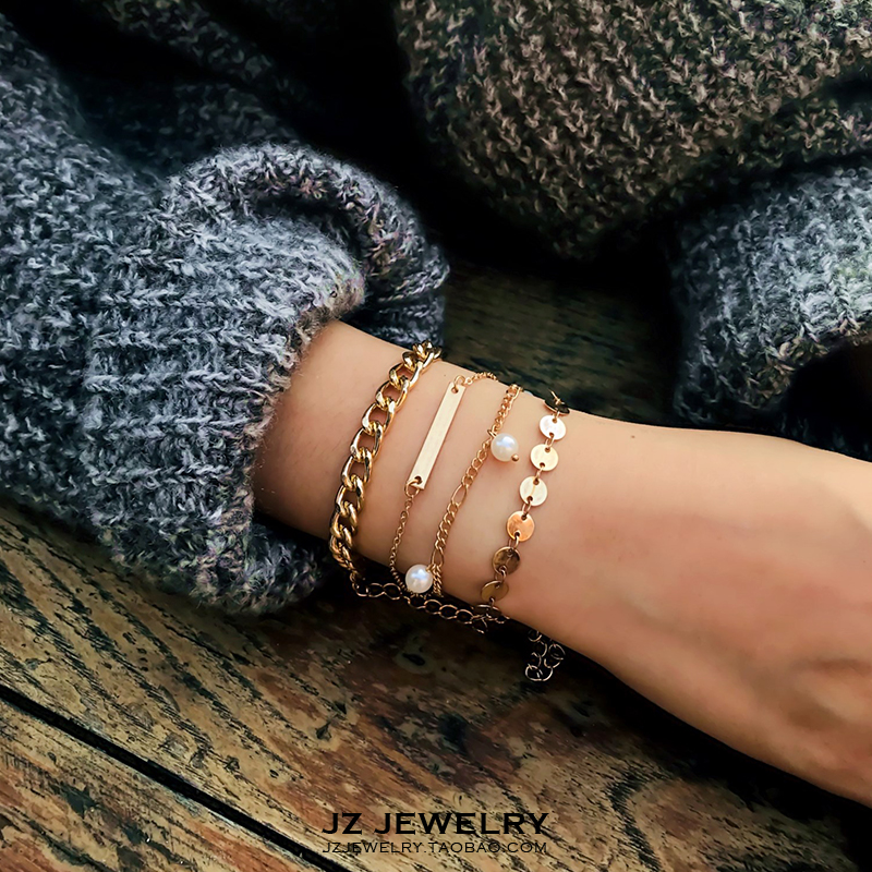 JZ Bracelet European and American retro-ins wind hand decorated with four sets of female Korean minimalist geometric pearls multilayer handmade