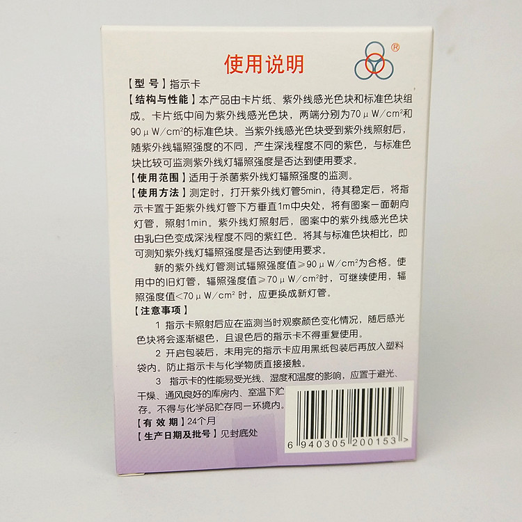 (UV test card) a box of 100 pieces (L-1 type chlorine concentration test paper) a box of (L-2 type glutardialdehydes concentration indicating card) a box of (residual chlorine test paper) a bottle of 50 pieces