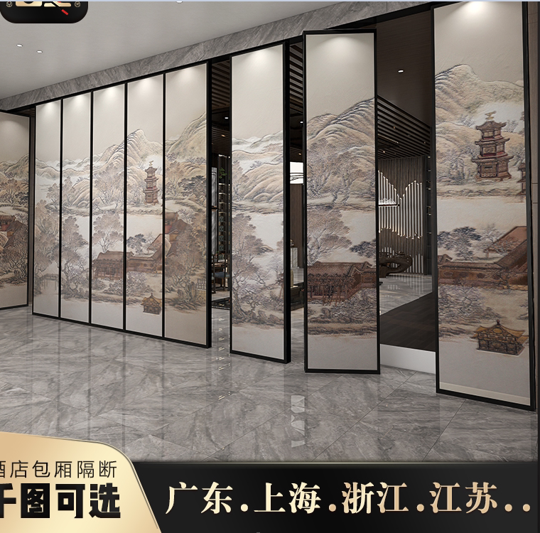 Hotel event partition banquet hall folding door hotel box mobile screen push-pull hanging wheel sound insulation partition wall