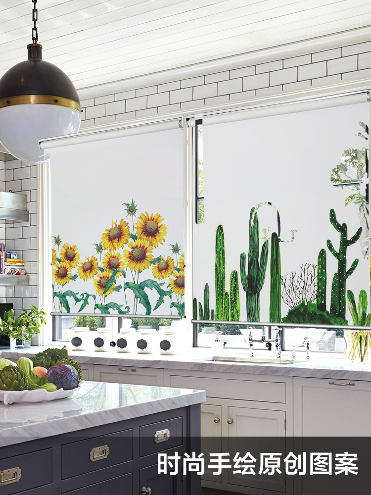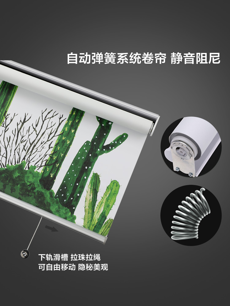 CR9 Liju Zhipin Printed Pattern Spring Roller Curtain Automatic Blackout Office Bathroom Kitchen Curtain
