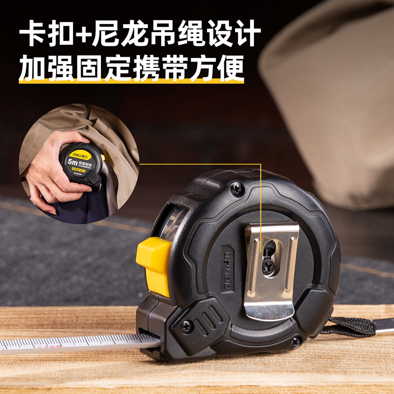 Deli Steel Tape Measure 5 meters Industrial Measuring Ruler Multifunctional Ruler Woodworking Tape Tool Ruler Tape Waterproof and Wear Resistant